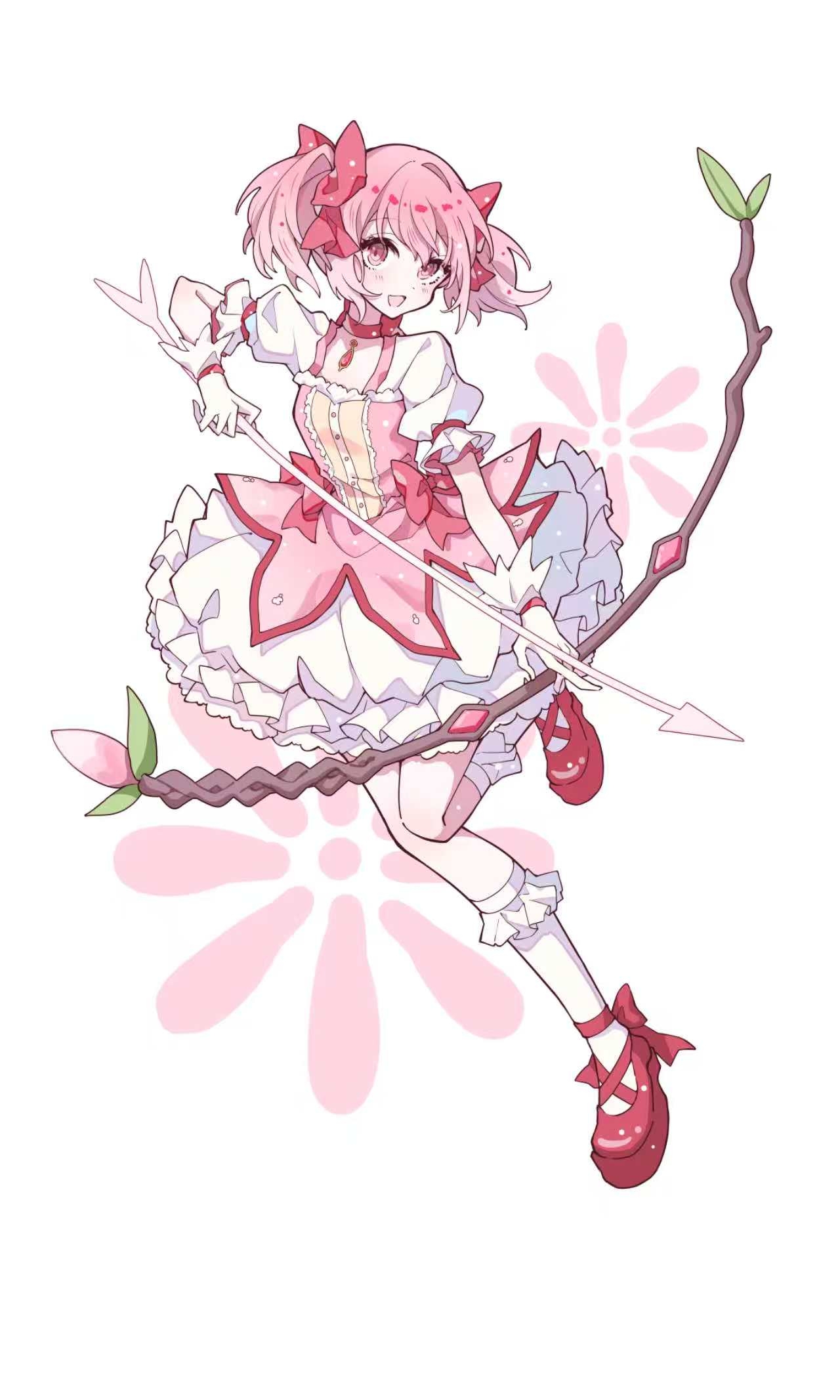 1girlblushbowbow (weapon)bow chokerbubble skirtchokerdressfrilled socksfrillsfull bodygloveshair bowhair ribbonholdingholding bow (weapon)holding weaponlooking at viewermagical girlpink eyespink hairpink themepuffy sleevesred chokerribbonshort hairshort twintailsskirtsmilesockssolosoul gemtwintailsweaponwhite gloves