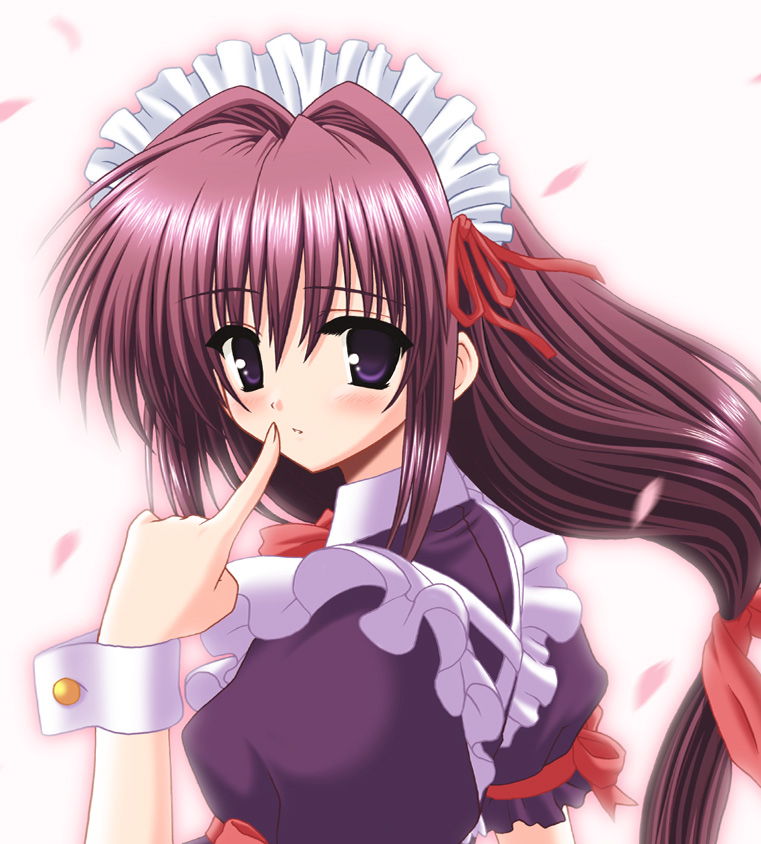 suzuhira hiro, hazuki ayane, aikagi, highres, scan, 1girl, ahoge, blonde hair, blush, breasts, brown hair, dress shirt, female focus, large breasts, no bra, one eye closed, purple eyes, shirt, solo, white shirt, wink