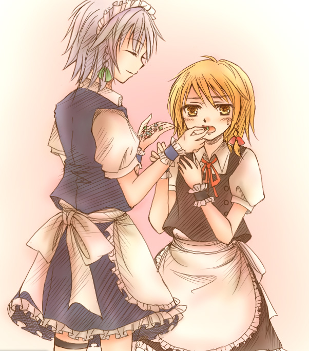 saitou gakushuu, flandre scarlet, ibuki suika, kirisame marisa, remilia scarlet, yakumo yukari, touhou, artist request, making-of available, 3girls, aqua hair, blonde hair, blue hair, brown eyes, brown hair, feet, female focus, hat, horns, mob cap, multiple girls, oekaki, ominous shadow, orange eyes, orange hair, red eyes, ribbon, scared, shadow, siblings, sisters, socks, tears, wings, witch hat, you gonna get raped