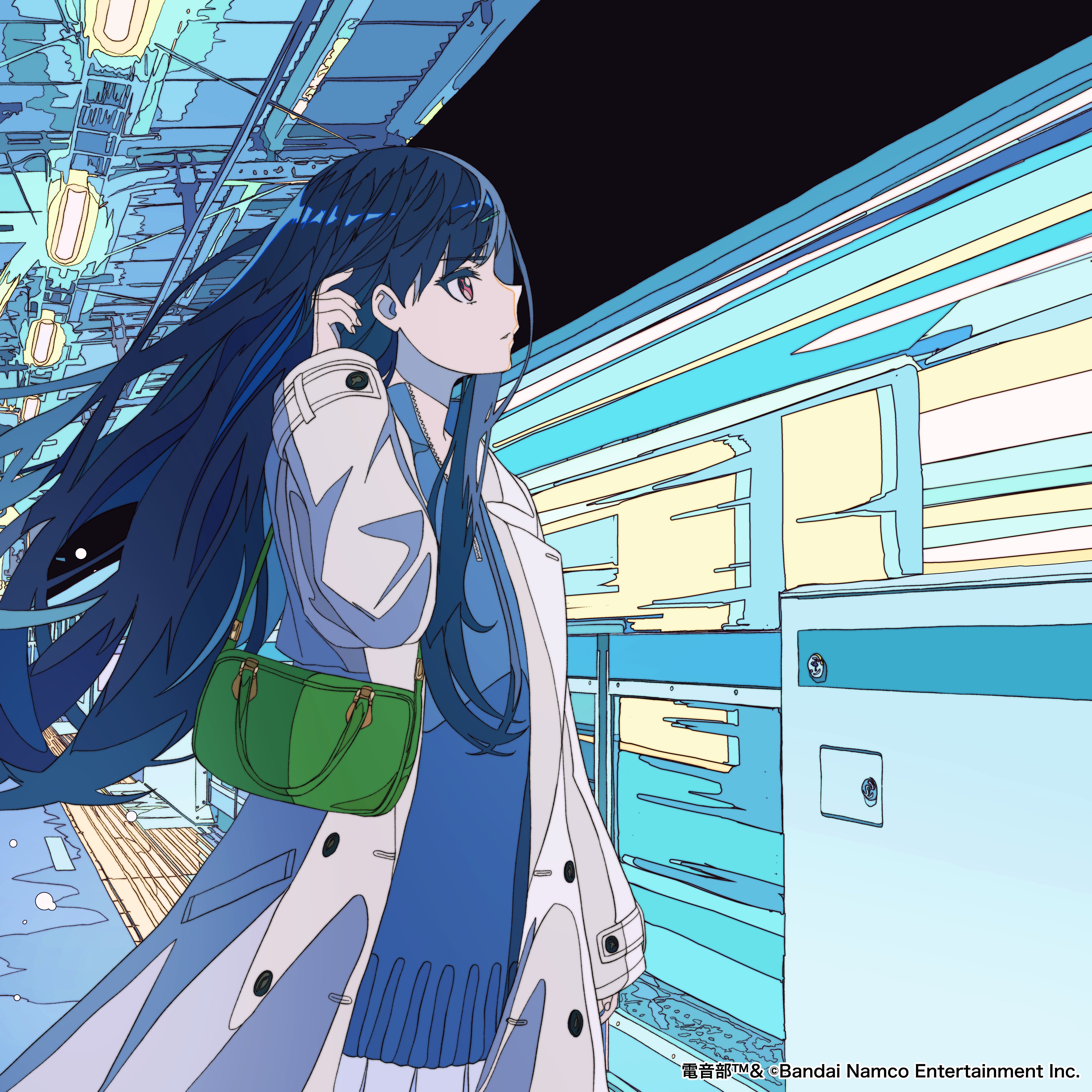 1girladjusting hairalbum coverblue dressblue haircoatcopyright noticecovercowboy shotdressgreen baggrey coathand upligne clairelong hairlong sleeveslooking aheadlooking to the sideofficial alternate costumeprofilesolostandingtraintrain station
