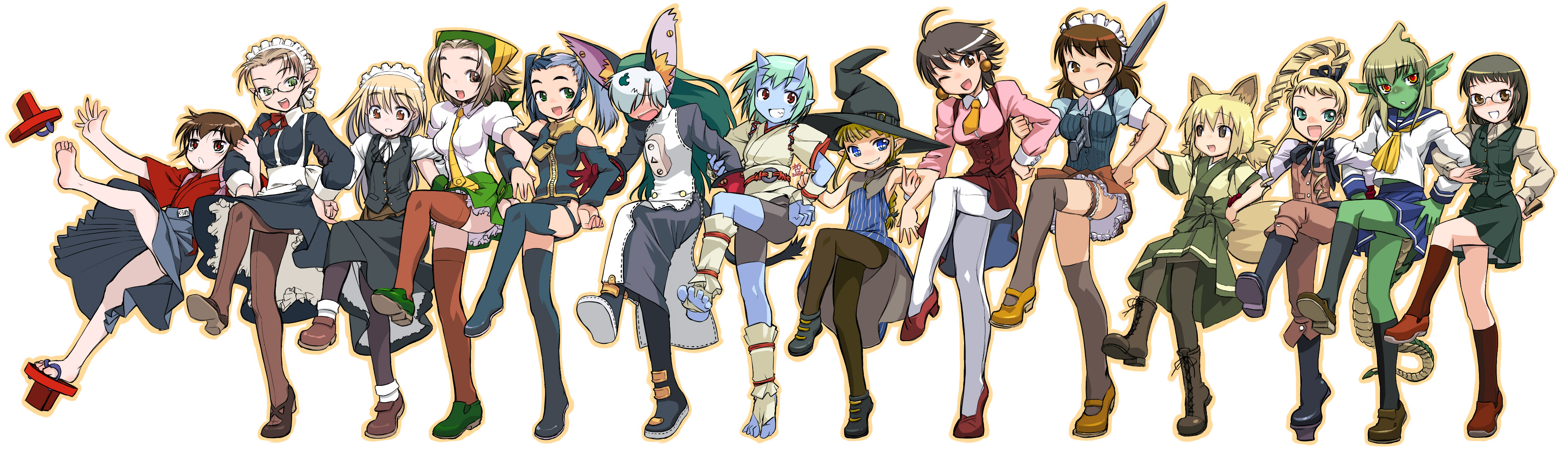 6+girlsanimal earsbarefootblonde hairblue oniblue skinbrown haircolored skindemon girldragon girldragon taildressdrill hairfeetfox earsfox tailgetaglassesgreen skinhair over one eyehatjapanese clotheskimonolineuplong skirtmaidmonster girlmultiple girlsone eye closedonipantyhosepointy earsrabbit earsscalesschool uniformshoesshort hairsingle shoeskirttailtengu-getathighhighswinkwitch hatzettai ryouiki