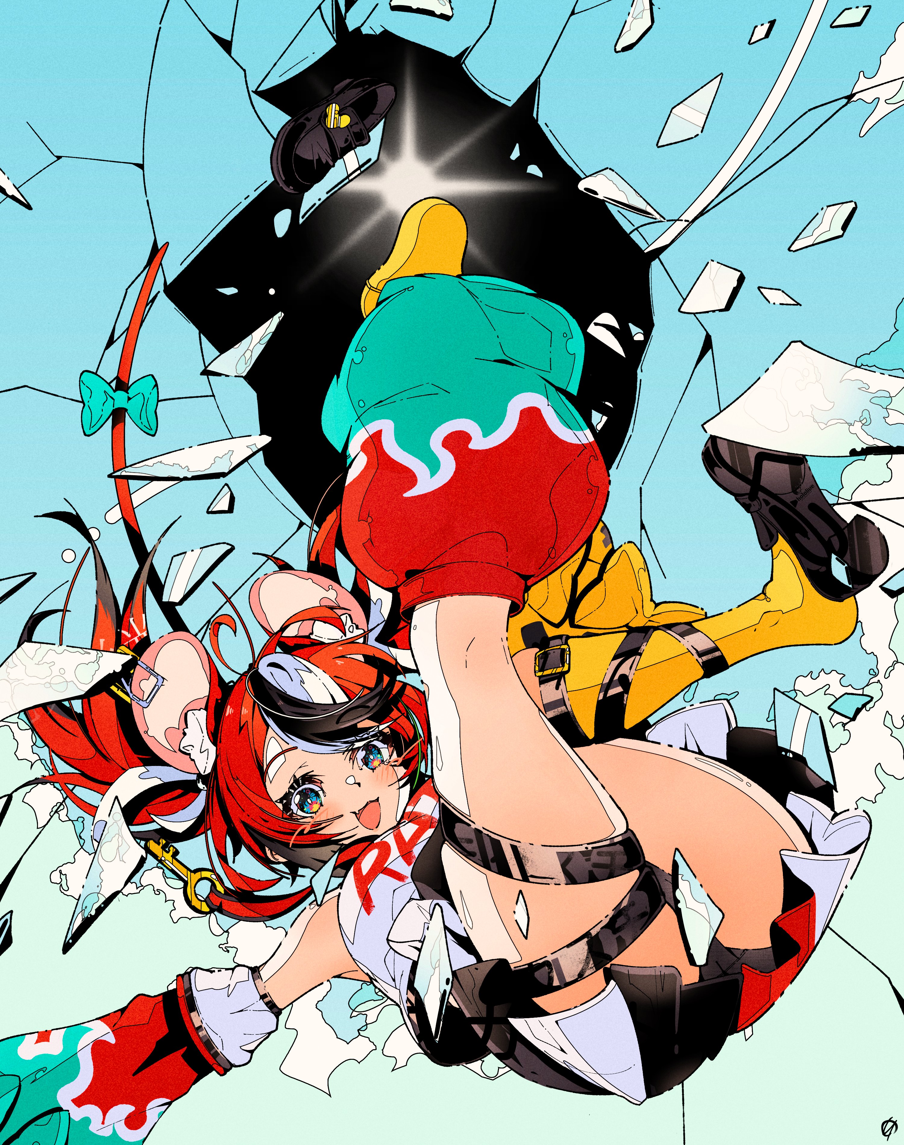1girlanimal earsblack hairblue eyesblushbreastsbroken glassfallingglasshair ornamentkeylong hairlooking at viewermouse earsmouse girlmouse tailmulticolored hairred hairsmilesolostreaked hairtailvirtual youtuberwhite hair