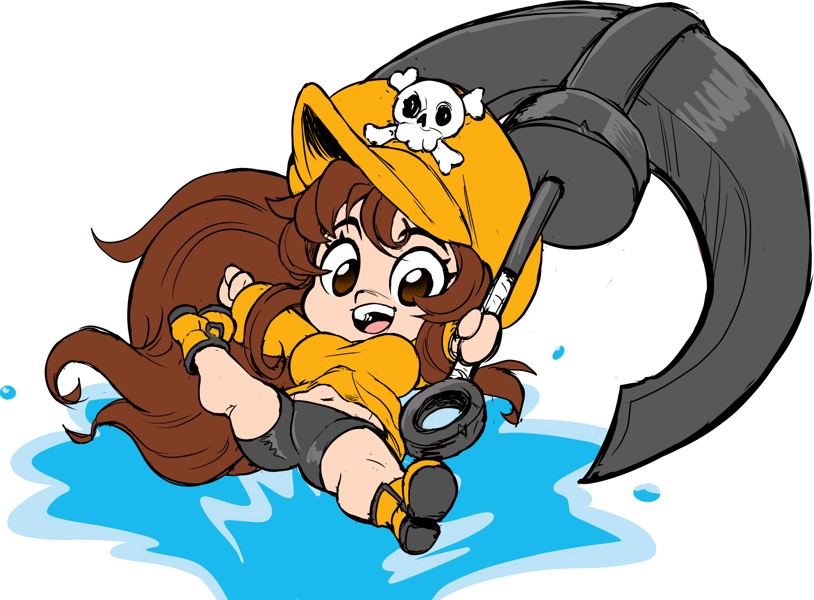 anchorbike shortsbreastsbrown eyesbrown hairchibihathuge weaponjapanese (nationality)large breastslegs apartlong hairnavelskull and crossbonestransparent backgroundwaterweapon