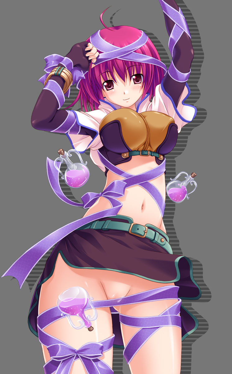 ahogecensoredconvenient censoringfingerless glovesgloveshuntermidriffnavelno pantiespussyred hairribbonshort hairsolo