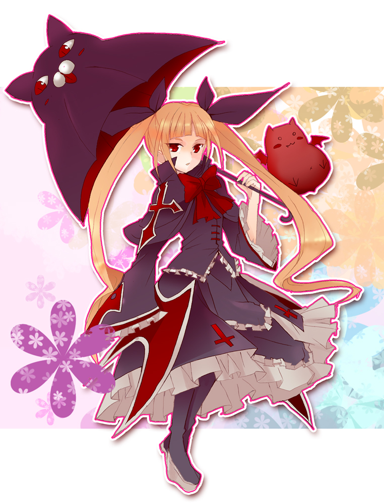 1girlblonde hairbowfemale focusgothic lolitalolita fashionlong hairred bowred eyesribbonsolotwintailsumbrellavery long hair