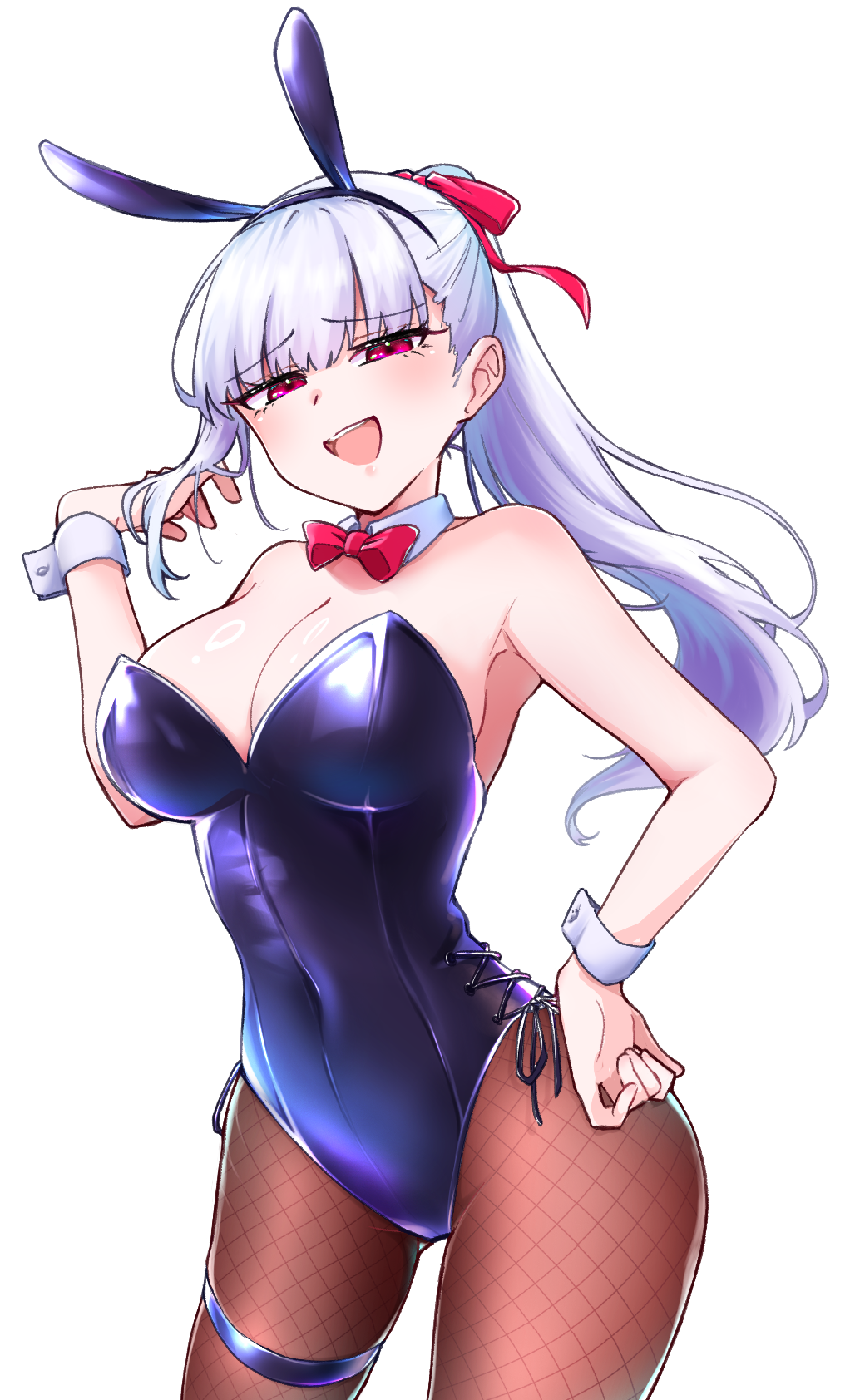 1girlanimal earsbare shouldersblack leotardblushbowbowtiebreastsbrown pantyhosecovered naveldetached collarfake animal earsfishnet pantyhosefishnetshair ribbonlarge breastsleotardlong hairlooking at vieweropen mouthpantyhoseplayboy bunnyponytailrabbit earsred eyesribbonsmilesolothigh strapwhite hairwrist cuffs
