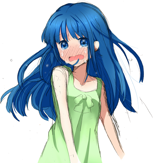 00s1girlblue eyesblue hairblushdressfemale focusgreen dresslong hairmatching hair/eyessimple backgroundsketchsolotearswhite background