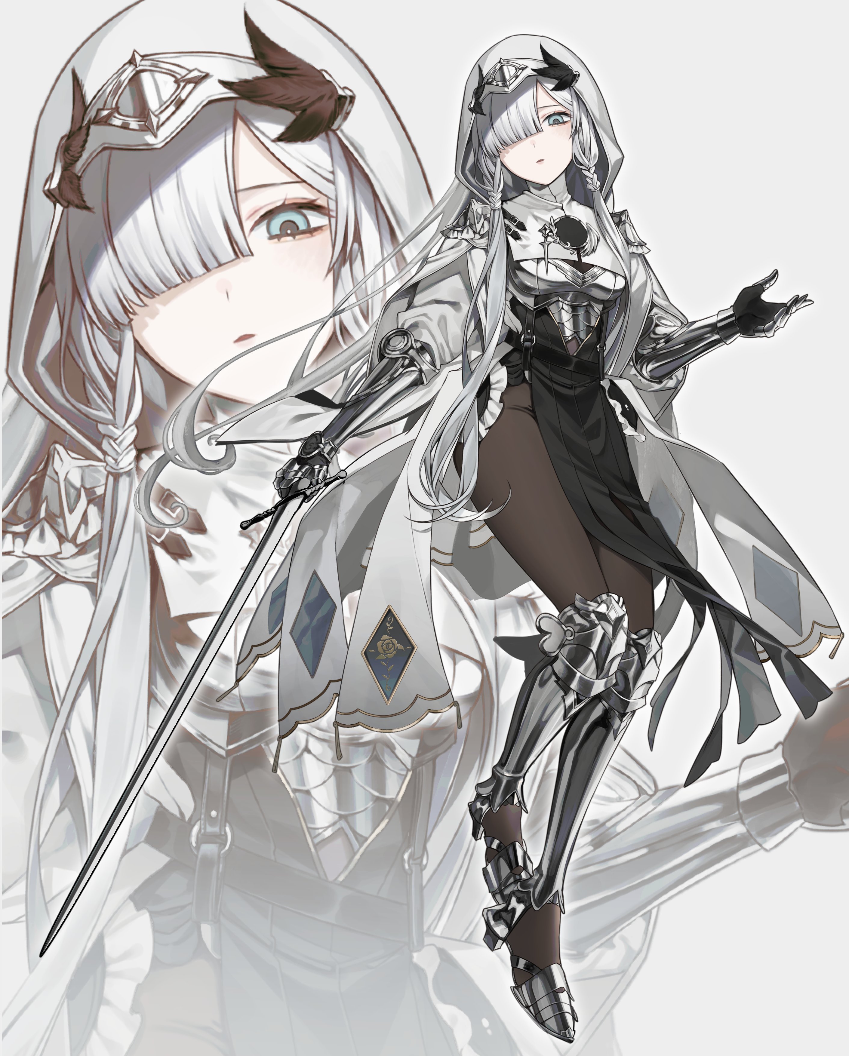 wavelevel5, erica fontaine, sakura taisen, sakura taisen iii, highres, boots, brown boots, brown eyes, brown hair, collar, cross, dress, dual wielding, gun, holding, holding gun, holding weapon, juliet sleeves, latin cross, long hair, long sleeves, looking at viewer, low-tied long hair, puffy sleeves, red dress, sidelocks, weapon, white collar