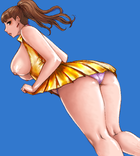 1girlassblue backgroundblunt bangsbreastless clothesbreastscheerleaderfemale focusfrom belowhuge asskneepitslarge breastsnipplespantiespantyshotpink pantiesskirtsolounderwearupskirt
