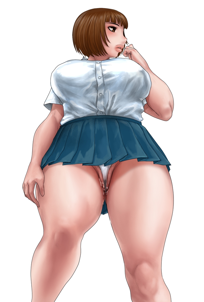 1girlbob cutbreastsbrown eyesbrown hairfemale focusfemale pubic hairfrom belowhip focushuge breastspantiespantyshotpubic hairpussypussy juiceschool uniformshort hairsimple backgroundskirtsolostandingunderwearupskirtwhite backgroundwhite pantieswide hips