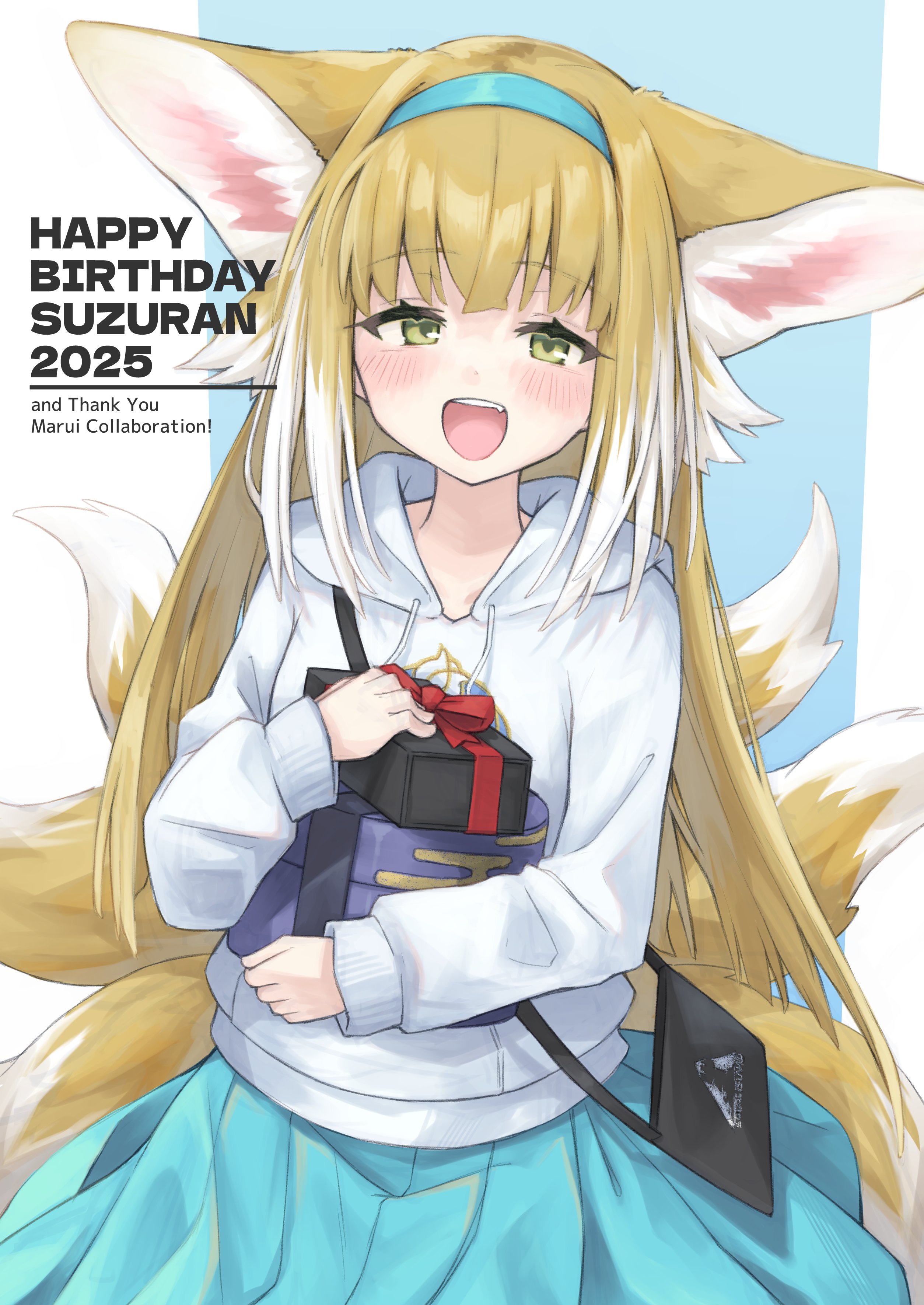 :d1girlanimal earsbagblack bagblonde hairblue hairbandblue skirtblunt endsboxcolored tipsdrawstringfox earsfox girlfox tailgiftgift boxgreen eyeshairbandhappy birthdayhoodhood downhoodiekitsunekyuubilong hairlong sleeveslooking at viewermulticolored hairmultiple tailsofficial alternate costumeopen mouthpleated skirtpuffy long sleevespuffy sleevesshoulder bagskirtsmilesolotailteethtwo-tone hairupper teeth onlywhite hairwhite hoodie