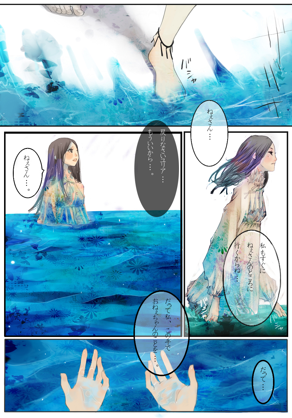 double flower, yaebane, original, blonde hair, blue eyes, long hair, one-piece swimsuit, solo, swimsuit, water