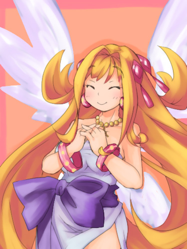 sera (ys), werebat, ys, ys vi, ys vi: the ark of napishtim, official art, 1girl, armpits, ass, bat wings, between breasts, black hair, blonde hair, bodypaint, breasts, brown background, choker, claws, dark-skinned female, dark skin, demon girl, facial mark, fairy, female focus, forehead mark, hair ornament, harpy, large breasts, long hair, monster girl, multicolored hair, nude, solo, tail, two-tone hair, wings