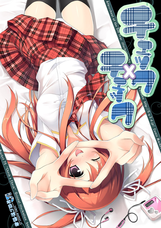 :d1girlblack thighhighsblushcoverdigital media playerdouble vfemale focushair ribbonnecktieone eye closedopen mouthorange hairpantiesplaid clothesplaid necktieplaid skirtpurple eyesribbonschool uniformskirtsmilesolothigh gapthighhighsthighstwintailsunderwearupside-downvwhite pantieswinkzettai ryouiki
