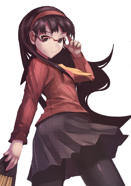 1girlfemale focusglassespantyhoseschool uniformserafukusimple backgroundsolostandingwhite background