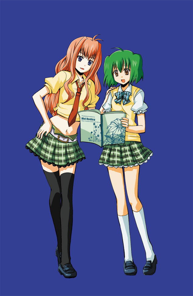 nefis, kaiou michiru, sailor neptune, sailor uranus, ten'ou haruka, bishoujo senshi sailor moon, blue footwear, 1990s (style), 2girls, blonde hair, blue sailor collar, blue skirt, boots, bow, chibi, gloves, green hair, hands on own hips, long hair, magical girl, mirror, multiple girls, one eye closed, outer senshi, retro artstyle, sailor collar, sailor senshi, short hair, simple background, skirt, sword, tiara, wavy hair, weapon, white gloves, wink, yellow bow