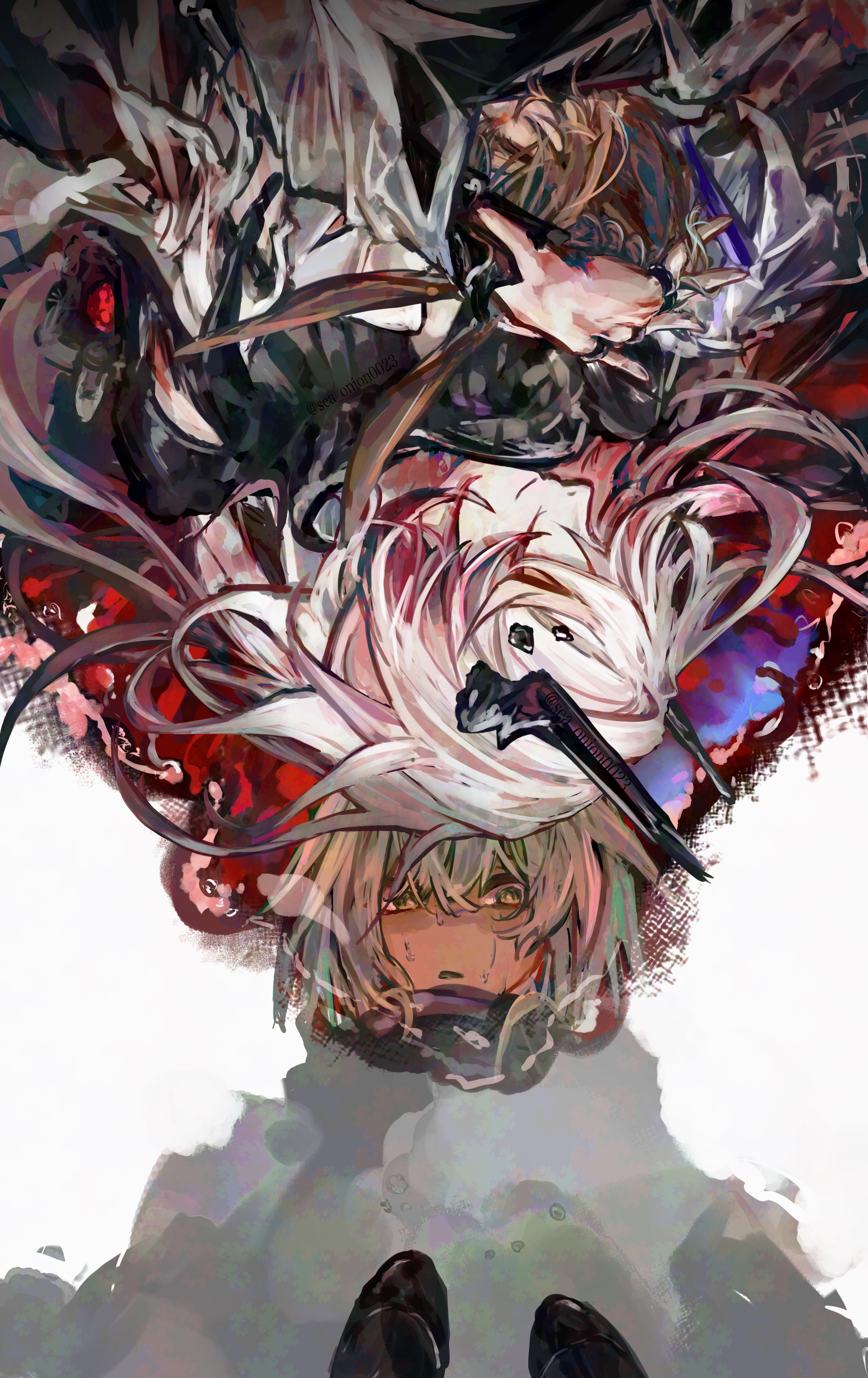 3girlsanimal earsblack hornsbloodbrown haircat girlcryingdeathdemon girldemon hornsdressfrom abovegreen eyesgreen hairheadpathornshugjewelrylong hairmedium hairmultiple girlsmultiple ringspink hairpool of bloodrabbit earsrabbit girlringsimple backgroundsmileturtleneckturtleneck dresstwitter usernamewhite background
