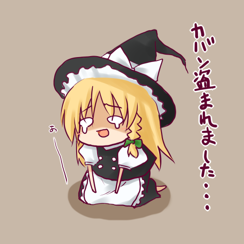 1girlblonde hairbraidchibifemale focusfull bodyhatsimple backgroundskirtsolotearswitchwitch hat