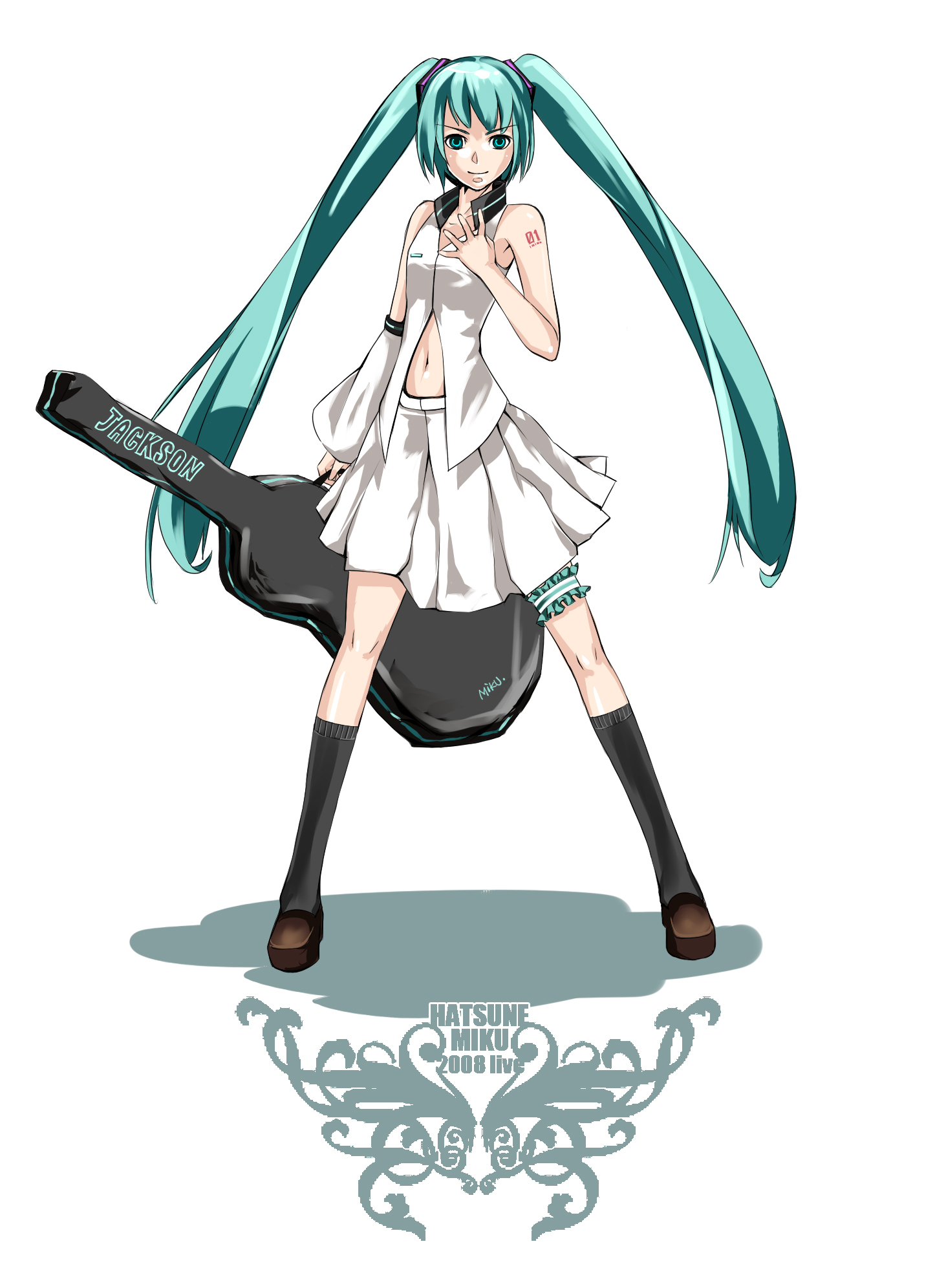 blue eyesblue hairdetached sleevesguitar caseinstrument caselong hairnavelskirtsockssolotwintails