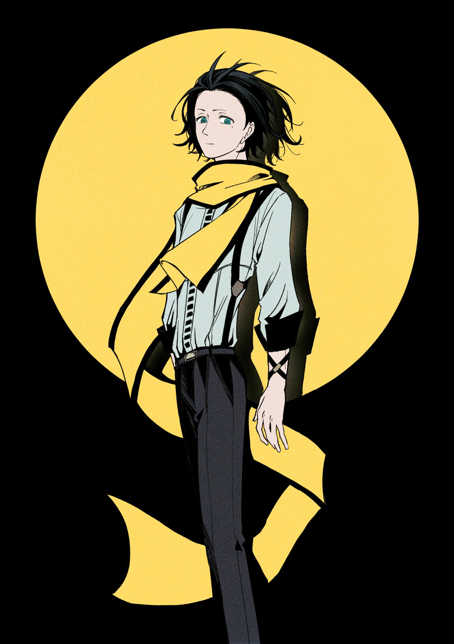mydei (honkai: star rail), honkai: star rail, honkai (series), hashtag-only commentary, highres, photo-referenced, 1boy, 9ea1u, abs, bare pectorals, belt, blonde hair, braid, brown belt, brown coat, chest tattoo, coat, denim, facial tattoo, gradient hair, hair between eyes, jeans, male focus, medium hair, multicolored hair, naked coat, open clothes, open coat, pants, pectorals, photo inset, red hair, red tattoo, reference inset, side braid, solo, tattoo, toned, toned male, yellow eyes