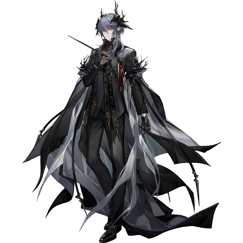 1boybishounenblack capeblack glovesblack jacketblack pantsblack shoesblack themeblue eyescapeclosed mouthfake head wingsformal clothesfull bodyglovesholdingholding penjacketlong sleeveslooking at viewermale focusofficial alternate costumepantspenpointy earsred eyesshoesshort hair with long lockssimple backgroundsolostandingtachi-etransparent background
