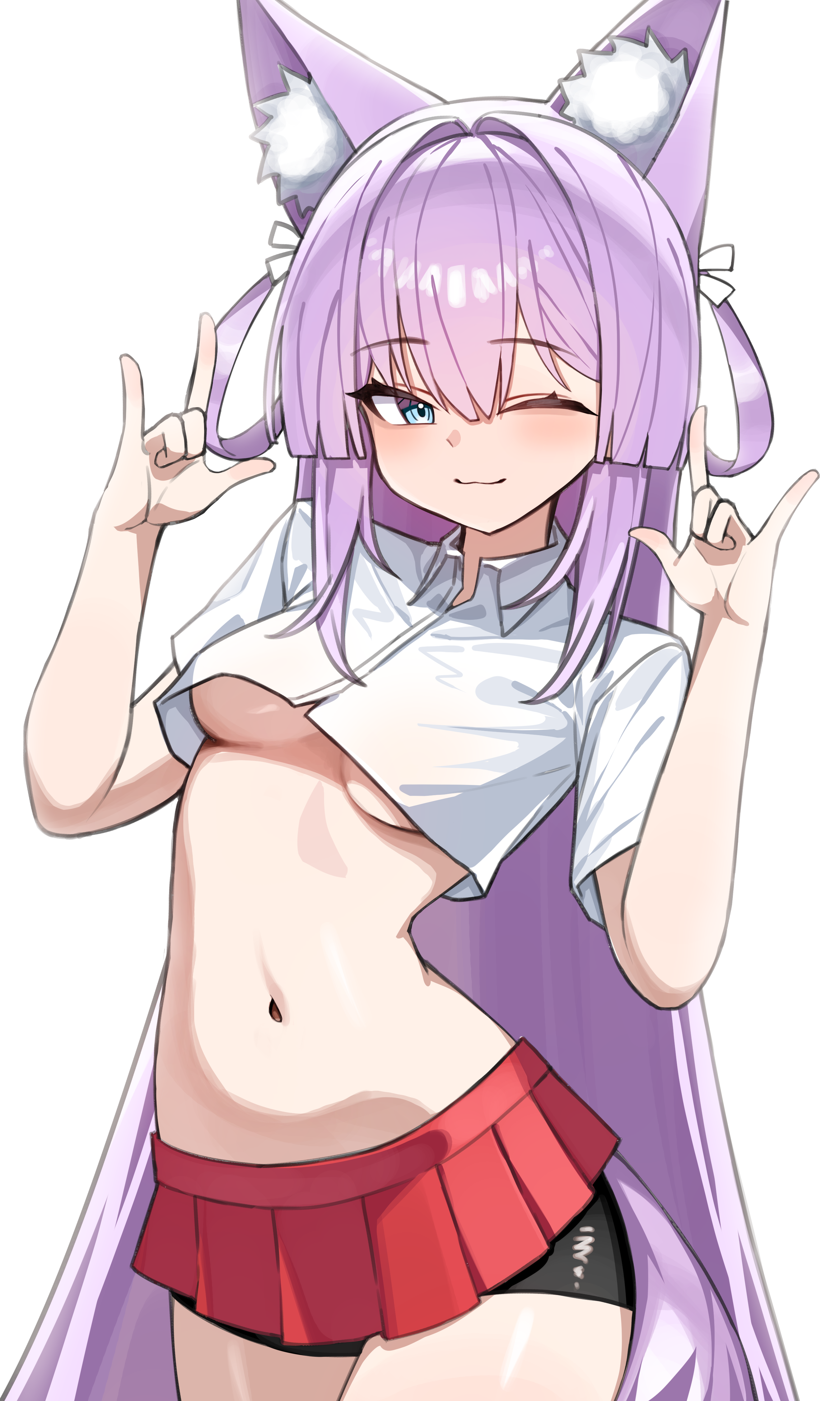 kawakami shuuichi, shu (artist), original, eyebrows, 1girl, armband, blush, brown shorts, collarbone, cowboy shot, female focus, frills, green hair, hair ribbon, jewelry, long hair, looking at viewer, necklace, pink ribbon, ribbon, short sleeves, shorts, smile, solo, star (symbol), twintails, two side up