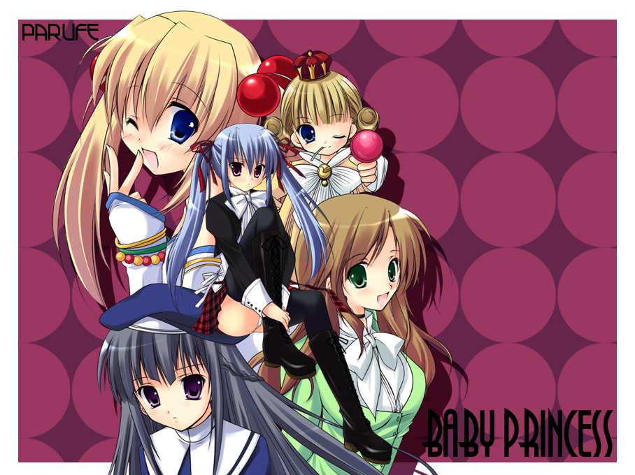 10s5girlsberetcopyright namecrownhair bobbleshair ornamenthair ribbonhatmultiple girlspink backgroundribbontwintails