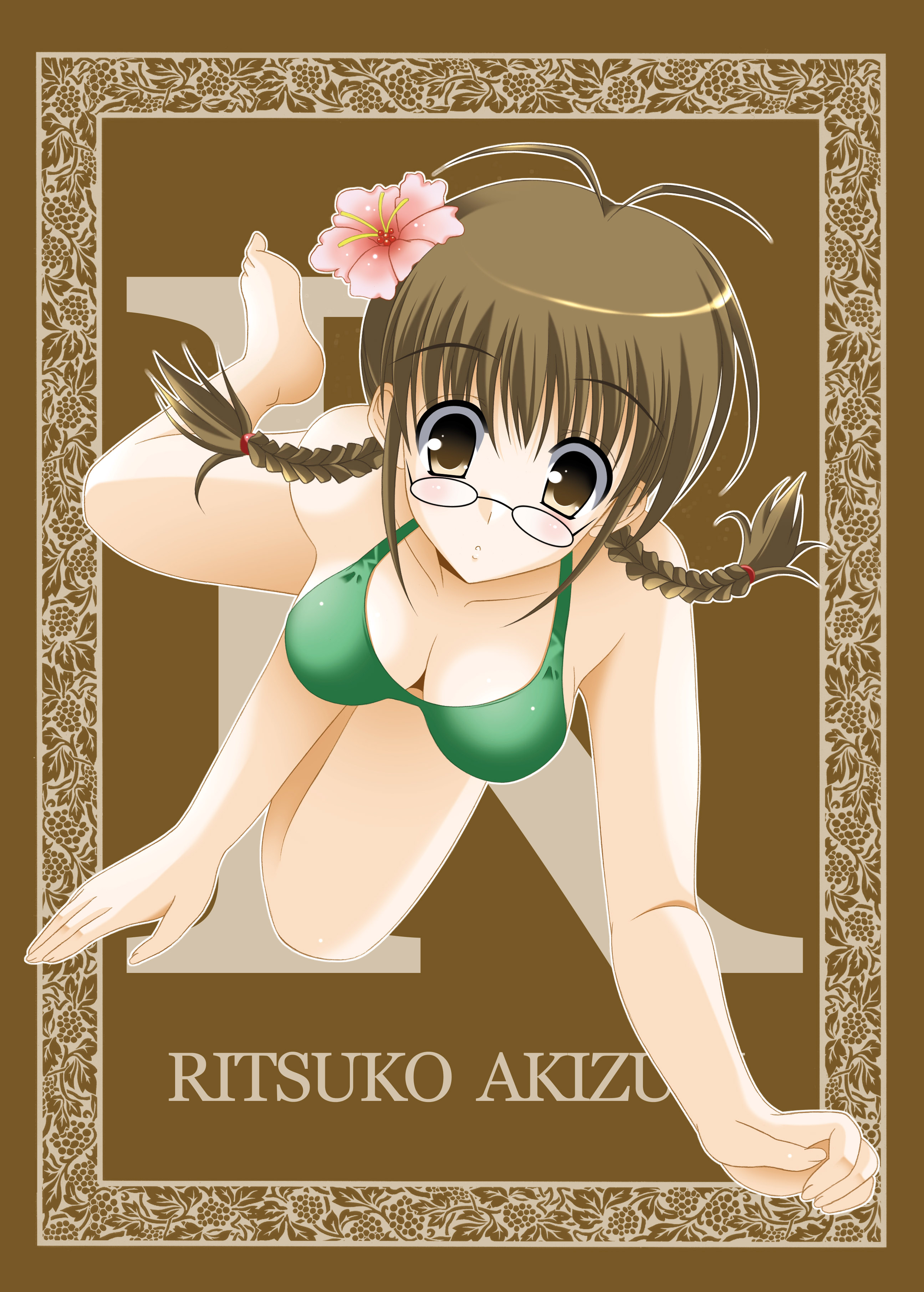 nishiya futoshi, kobayakawa yutaka, lucky star, non-web source, third-party edit, 00s, 1girl, blush, character name, copyright name, female focus, green eyes, innertube, one-piece swimsuit, open mouth, red hair, short twintails, solo, swim ring, swimsuit, twintails