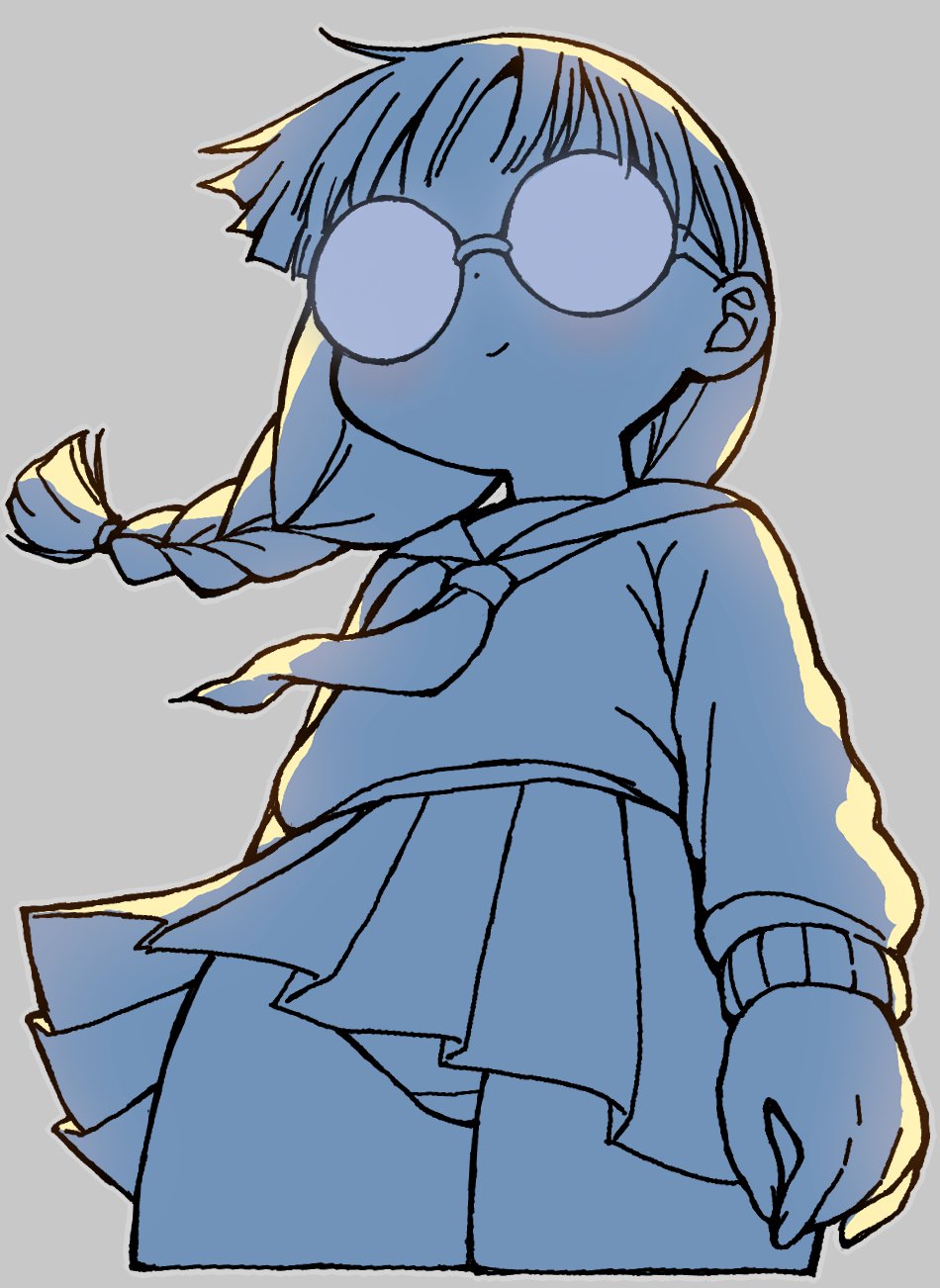 koharustuki, ame-chan (needy girl overdose), chouzetsusaikawa tenshi-chan, needy girl overdose, tearing paper, highres, redrawn, :o, aseprite (medium), black eyes, black hair, blonde hair, blue background, blue eyes, blue shirt, border, bow, chest bow, colored tips, dual persona, hair bow, hands up, head tilt, heterochromia, holographic clothing, looking at viewer, multicolored hair, multiple hair bows, neck ribbon, outside border, pixel art, quad tails, revealing layer, ribbon, shirt, sidelocks, white border