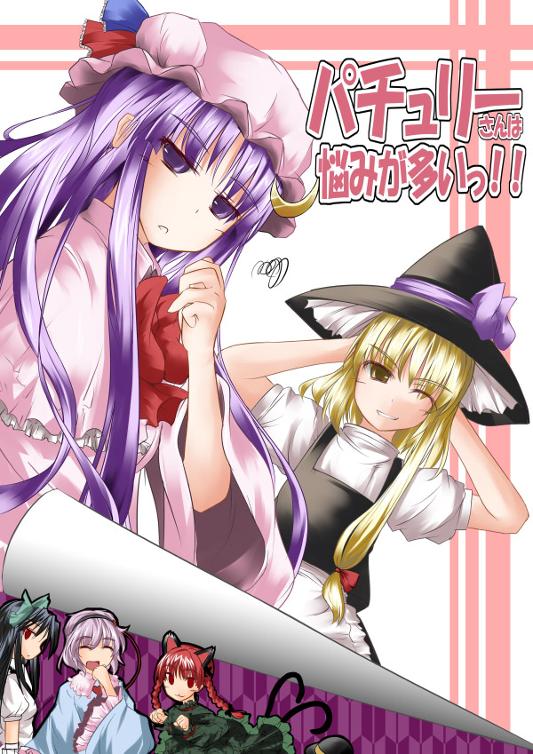 :d5girlsanimal earsblonde hairblushbraidcat earscat girlcrescentdressfemale focusgreen dresshatlong sleeveslooking at viewermini personminigirlmob capmultiple girlsmultiple tailsnekomataone eye closedopen mouthparted lipspurple eyespurple hairsmiletailtwin braidstwo tailswitch hat