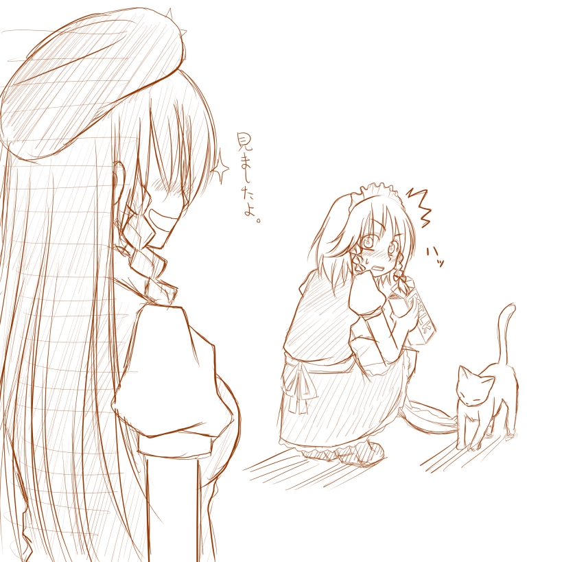 kamiya maneki, original, 1girl, blush, female focus, glasses, hair ornament, hairclip, holding, jar, long hair, looking at viewer, monochrome, plant, sketch, smile, solo, tareme, upper body