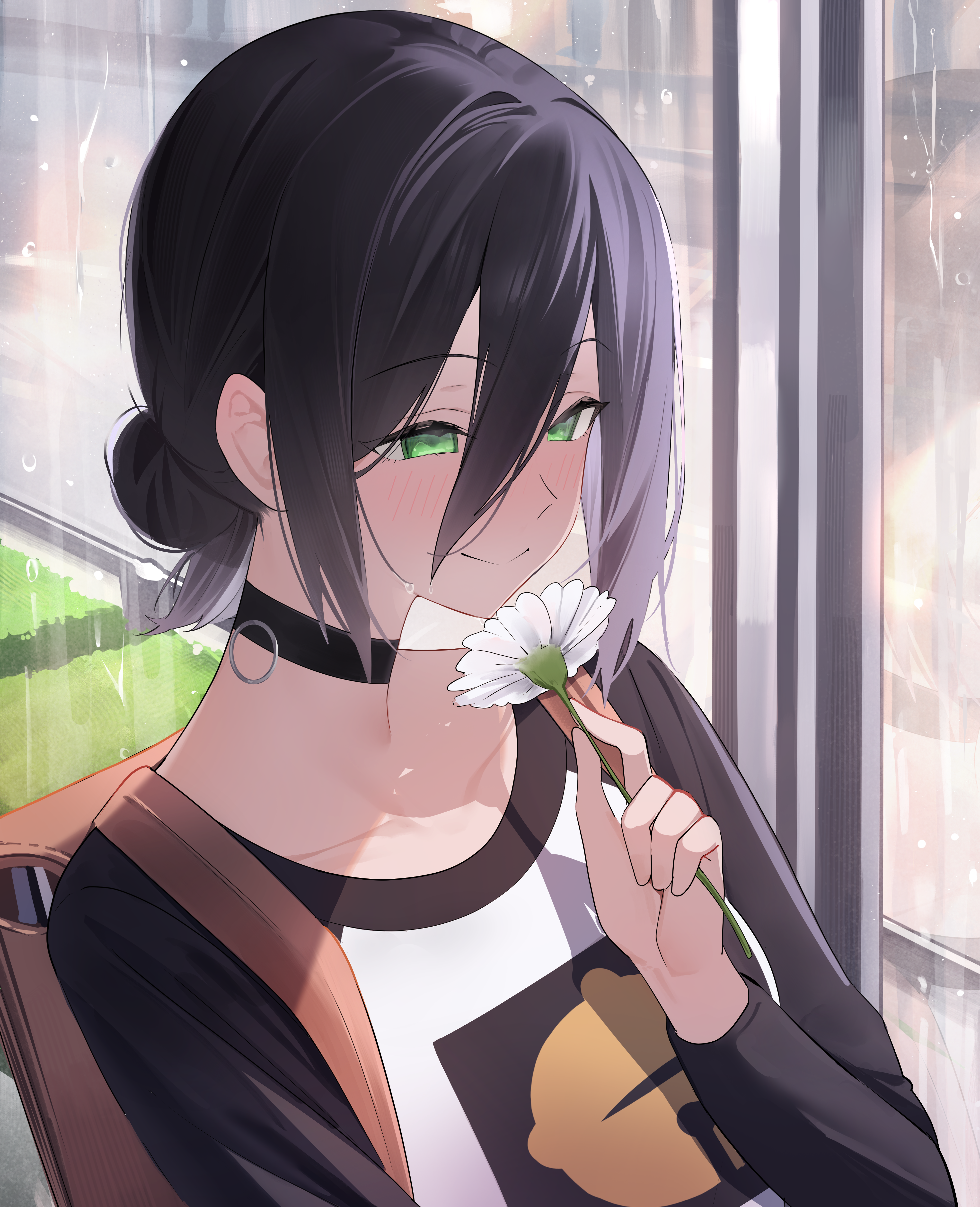 original, tagme, 1girl, blue dress, dress, female focus, hair ornament, solo