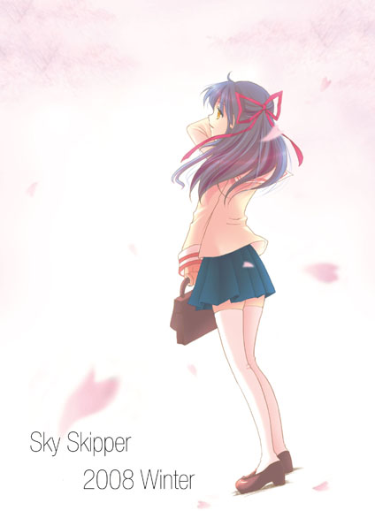 00s1girl2008blue hairfemale focushair ornamenthair ribbonlong hairribbonschool uniformsolothighhighswhite thighhighs