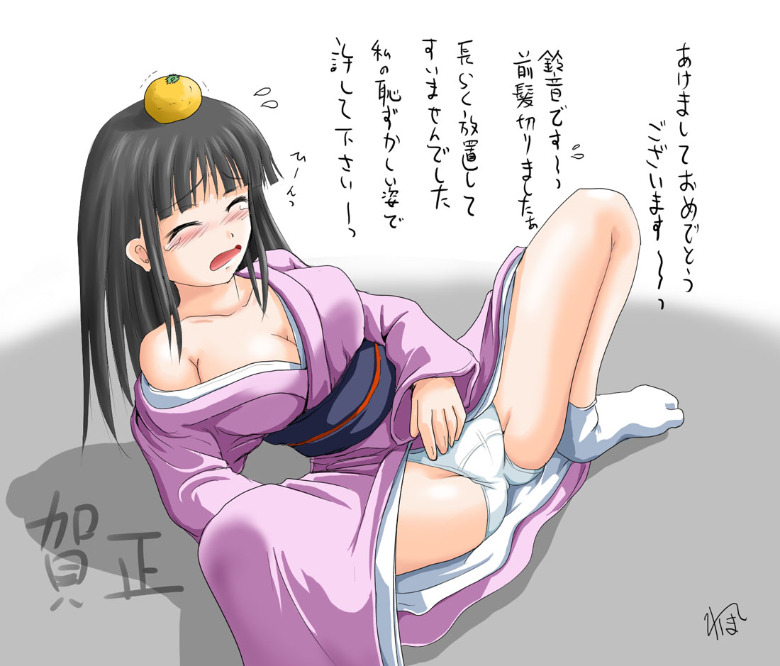 1girlblack hairblushfemale focusfoodfruithave to peejapanese clotheskimonomandarin orangeorange (fruit)pantiespantyshotsolospread legssquattingtearsunderwearwhite panties