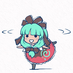 1girlchibifemale focusfront ponytailfull bodygreen hairsimple backgroundsolospinningstandingwhite background