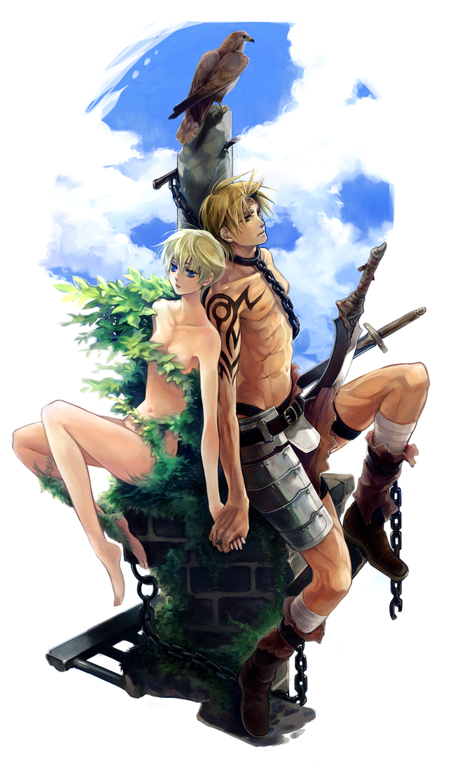 topless, artist request, 1girl, blue eyes, blue hair, breasts, flower, groin, loli, lowleg, lowleg panties, matching hair/eyes, navel, nipples, panties, ponytail, side-tie panties, simple background, small breasts, solo, underwear, underwear only, yellow background