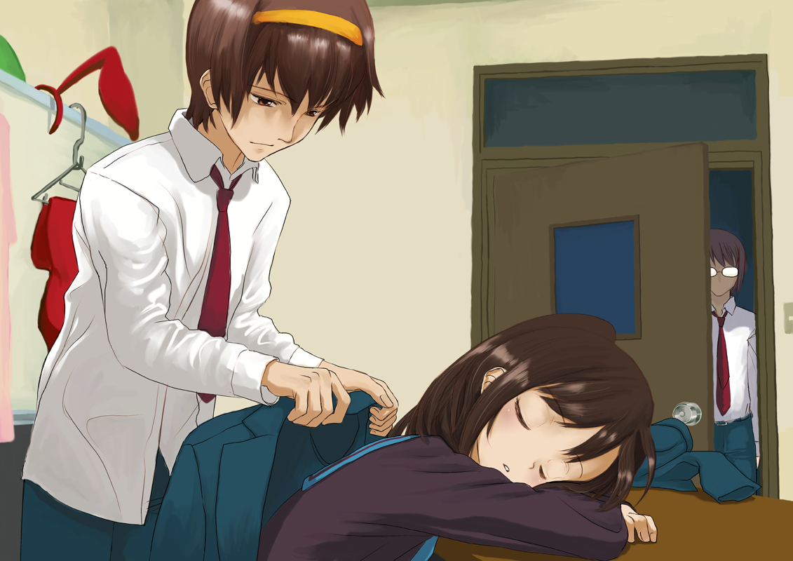 setsunakaizuki, kasumi (doa), dead or alive, tecmo, cosplay photo, photo (medium), 1girl, 2boys, asian, black hair, breasts, cleavage, cosplay, huge breasts, kasumi (doa) (cosplay), large breasts, multiple boys, outdoors, plump, ponytail