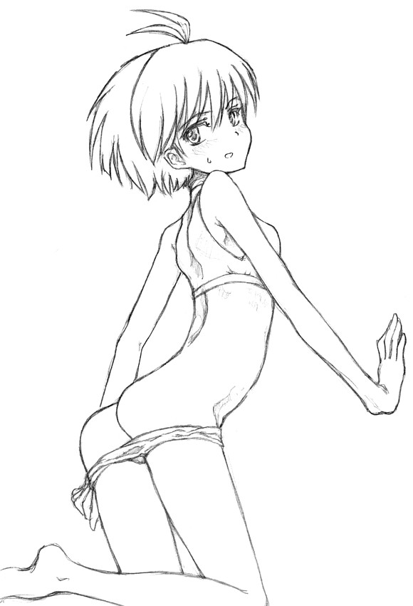 00s1girlantenna hairassbarefootbikinifemale focusgreyscalelooking backmonochromeshort hairsimple backgroundsketchskinnysolosports bikiniswimsuit