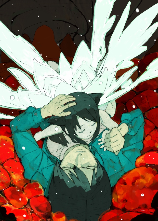 tao, tao (kadoya), kochiya sanae, touhou, 1girl, blush, detached sleeves, female focus, green hair, long hair, one eye closed, solo, star-shaped pupils, star (symbol), symbol-shaped pupils, upper body, wink