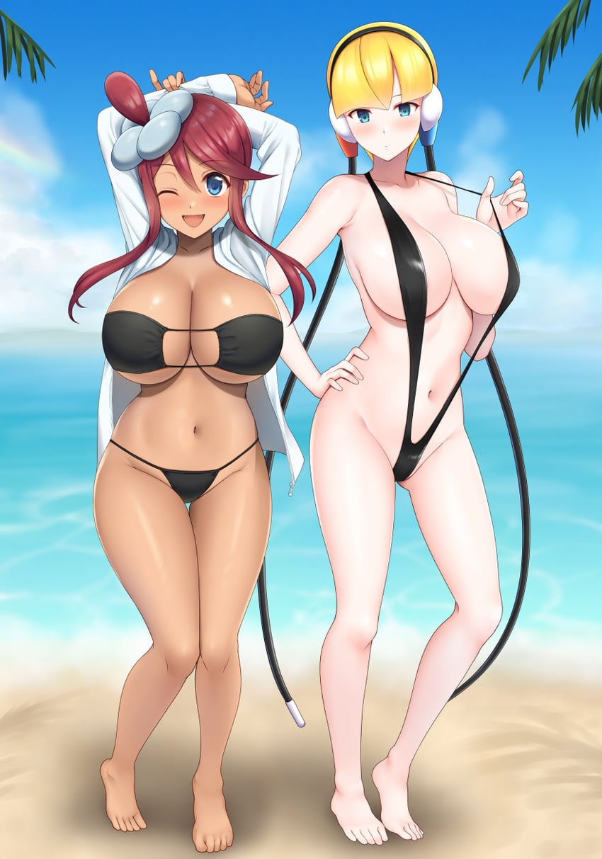 mis, misoka nitsuki, gongsun zan, yagokoro eirin, sangokushi taisen, touhou, 1girl, breasts, cleavage, female focus, hat, huge breasts, large breasts, naughty face, solo, thighhighs, underboob