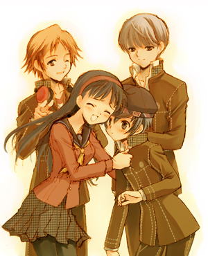 shusuchii, hifumi (blue archive), nagisa (blue archive), nagisa (swimsuit) (blue archive), blue archive, absurdres, commentary, highres, symbol-only commentary, translation request, 2girls, alternate costume, black nails, breasts, brown hair, closed mouth, cosplay, eyewear on head, fingernails, halo, long hair, multiple girls, nagisa (blue archive) (cosplay), nail polish, orange eyes, small breasts, sunglasses, swimsuit, twintails, yellow halo