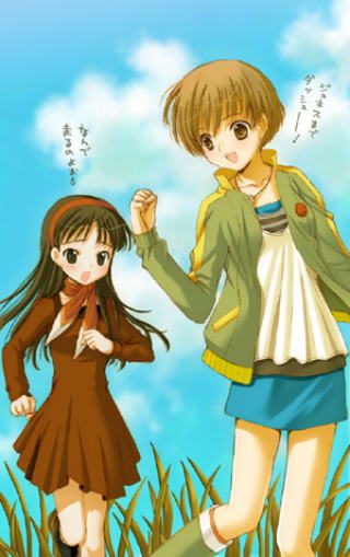 kumuiutabito, tokinomiya kamui, arcana heart, lowres, 1girl, chibi, female focus, green hair, katana, long hair, purple eyes, school uniform, serafuku, solo, sword, weapon