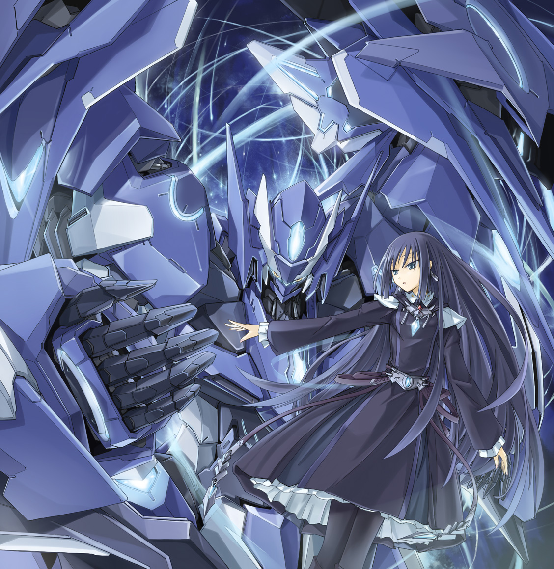youkai ankake, gwendolyn (odin sphere), odin, odin (odin sphere), odin sphere, highres, 1boy, 1girl, armor, armored dress, blue eyes, blush, boots, choker, crown, dress, elbow gloves, father and daughter, gloves, hat, multicolored wings, panties, size difference, strapless, strapless dress, thigh boots, thighhighs, underwear, white hair, wings