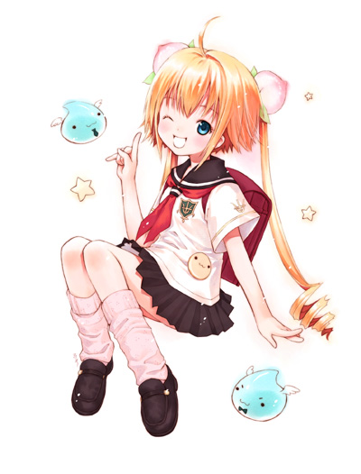 ryoji (nomura ryouji), gao (marl kingdom), princess kururu, ranran (marl kingdom), ranran (rhapsody), little princess, marl kingdom, nippon ichi, 3girls, blue hair, breasts, brown hair, hat, long hair, medium breasts, multiple girls, underboob
