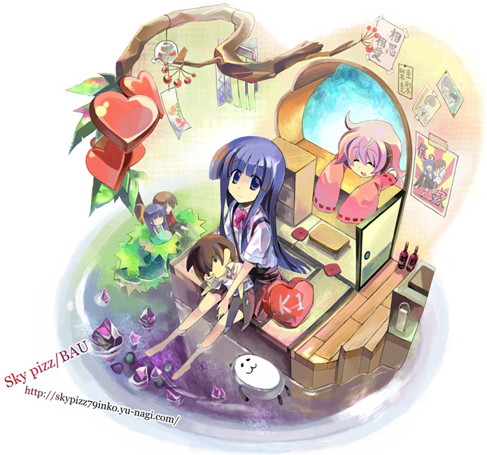 00s2girlsblue eyesblue hairbowcharacter dollclosed eyesdollfloodhearthornslong hairmultiple girlspink bowpurple hairwaterwind chime