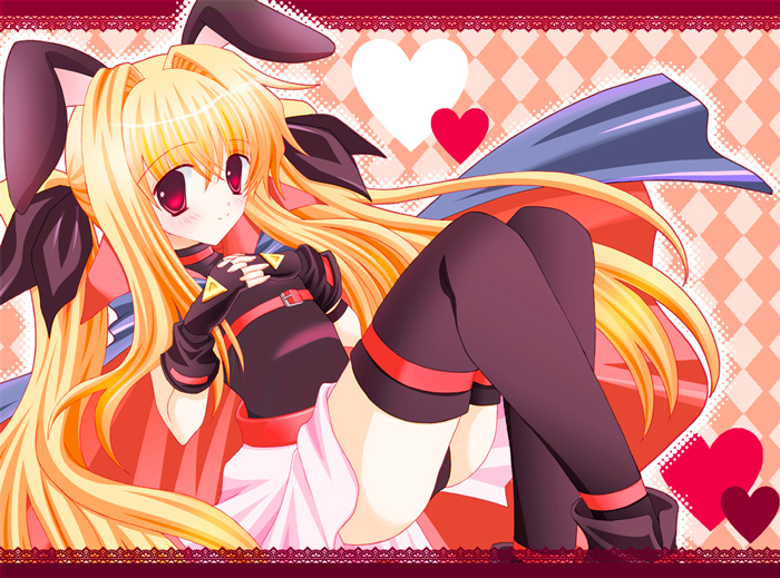 toase15a, chaos marie (grimms notes), grimms notes, bad id, bad twitter id, 1girl, blonde hair, heart, heart-shaped pupils, maid, solo, symbol-shaped pupils
