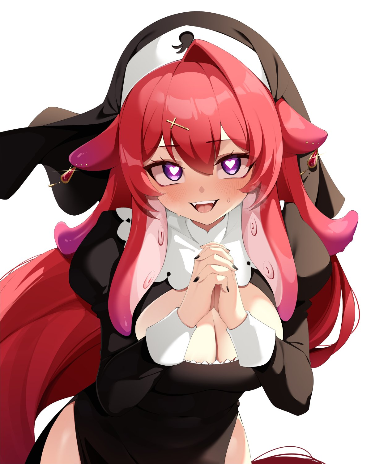 nz99, shinosawa hiro, gakuen idolmaster, idolmaster, hashtag-only commentary, highres, 1girl, arms behind back, black sailor collar, black skirt, blonde hair, blue neckerchief, blue ribbon, closed mouth, collarbone, colored eyelashes, earrings, flipped hair, full body, gradient hair, grey hair, hair ornament, hairclip, hatsuboshi gakuen school uniform, jewelry, long hair, looking to the side, multicolored hair, neckerchief, no shoes, orange eyes, parallel hairclips, parted bangs, pleated skirt, ribbon, sailor collar, school uniform, serafuku, shirt, simple background, skirt, socks, solo, standing, stud earrings, twitter username, white background, white shirt, white socks