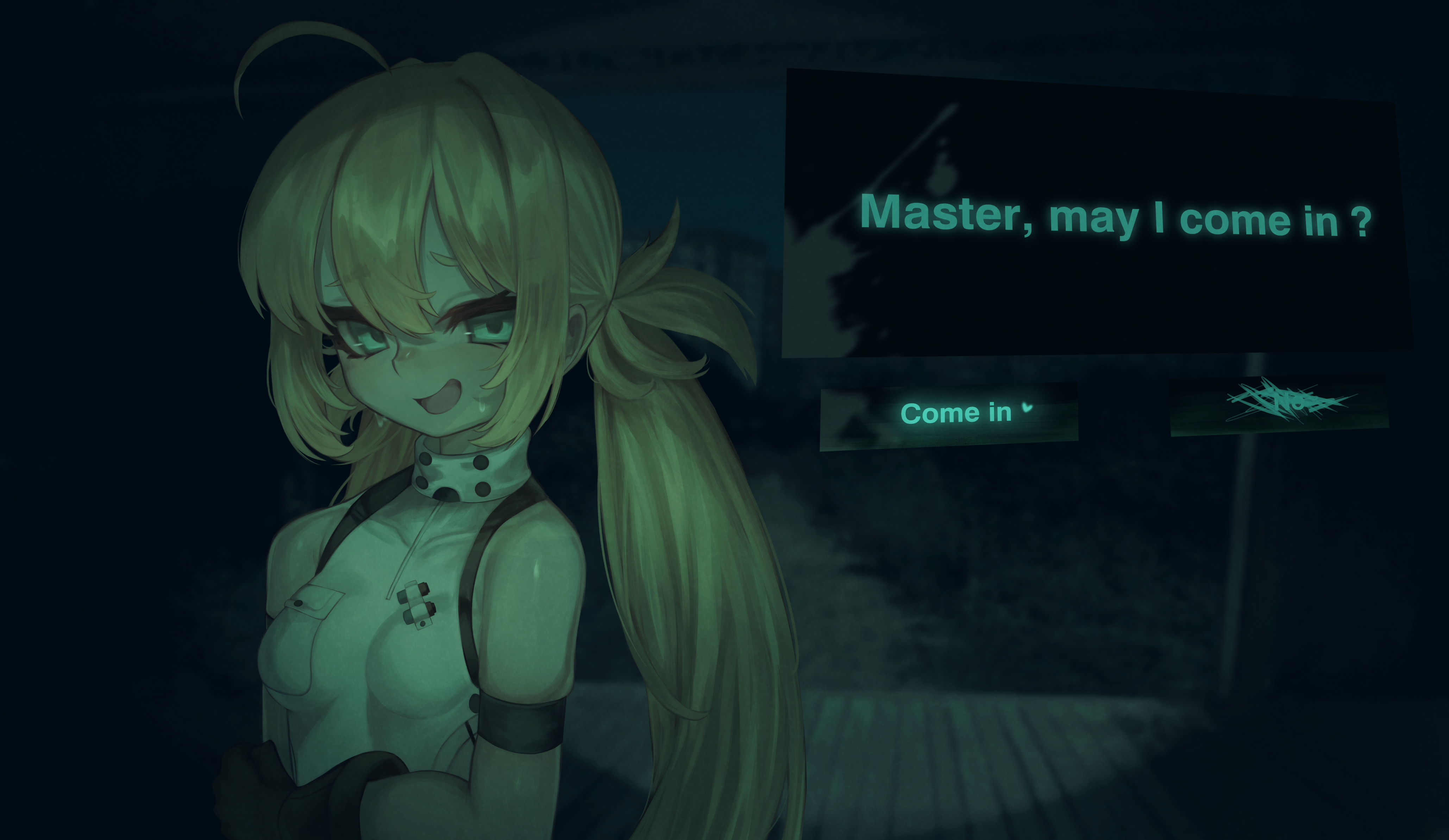 irene koh, ramlethal valentine, guilty gear, guilty gear strive, highres, animal hat, artist name, belt buckle, blonde hair, buckle, cat hat, clover, dark-skinned female, dark skin, four-leaf clover, hat, lips, long hair, medium hair, orange eyes, signature, white background, white hat