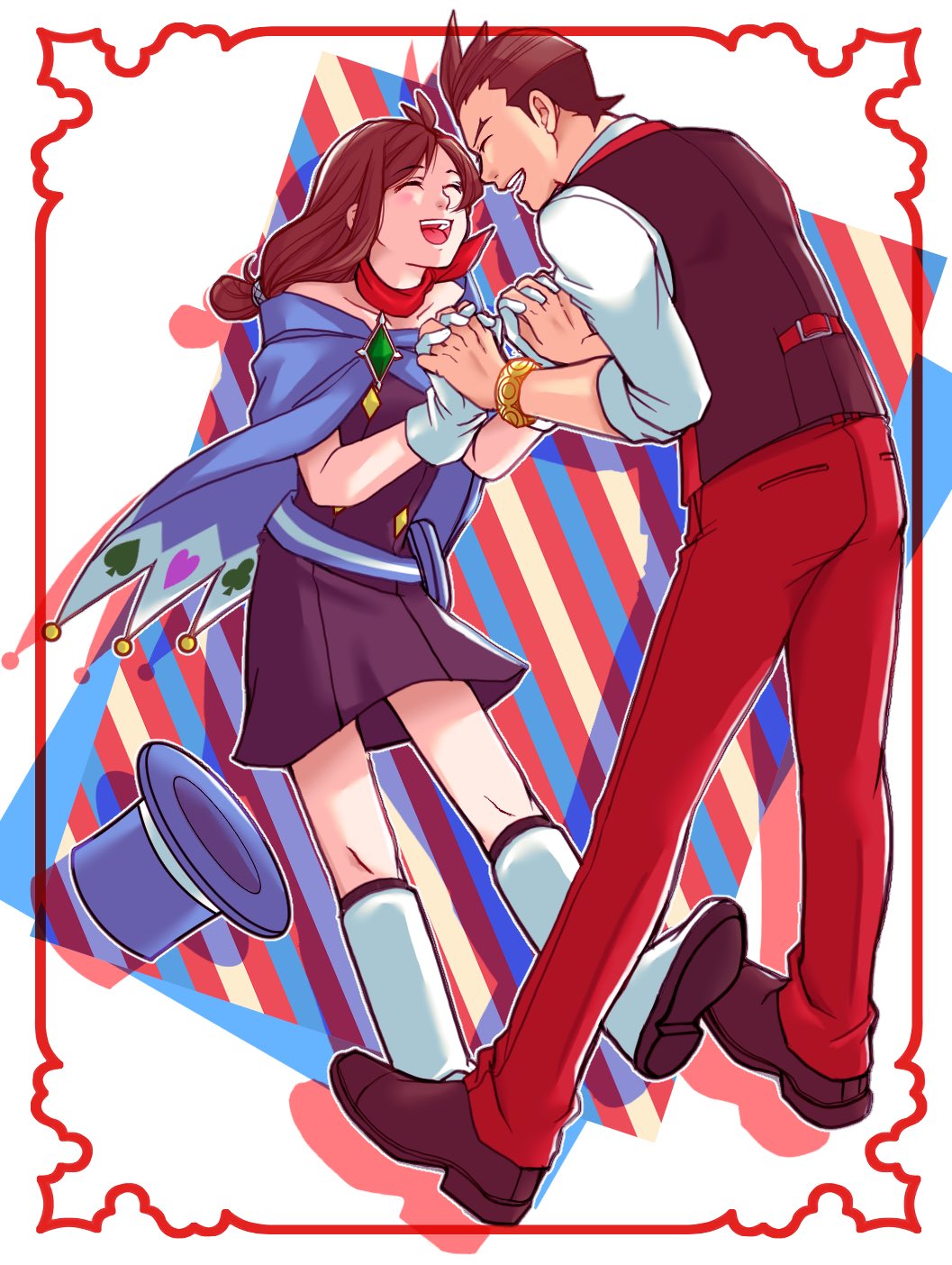 iiyoiindayo, miyao miya, idolmaster, idolmaster million live!, idolmaster million live! theater days, fluffy hair, absurdres, highres, 1girl, :d, asymmetrical bangs, black ribbon, blunt bangs, brown dress, brown hair, dress, frilled sleeves, frills, from side, gradient background, heart, light blush, neck ribbon, open mouth, parted bangs, pink background, plaid clothes, plaid dress, puffy short sleeves, puffy sleeves, red eyes, ribbon, short sleeves, smile, solo, teeth, thick eyebrows, upper teeth only, wavy hair, wing collar