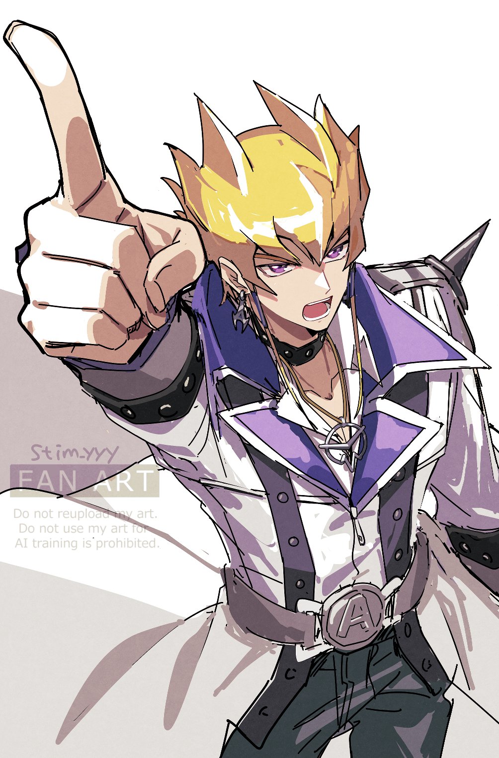 1boyarm upbeltblack pantsblonde haircoatcowboy shotjewelrymale focuspantspendantpurple eyesshort hairsimple backgroundsolowatermarkwhite backgroundwhite coat